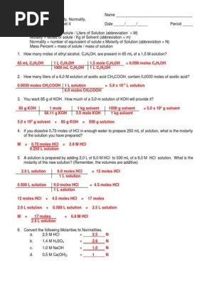 Chemistry Molarity Worksheet Answers / Solved Dr Slotsky Chemistry Ii Molarity Problems Chegg Com -